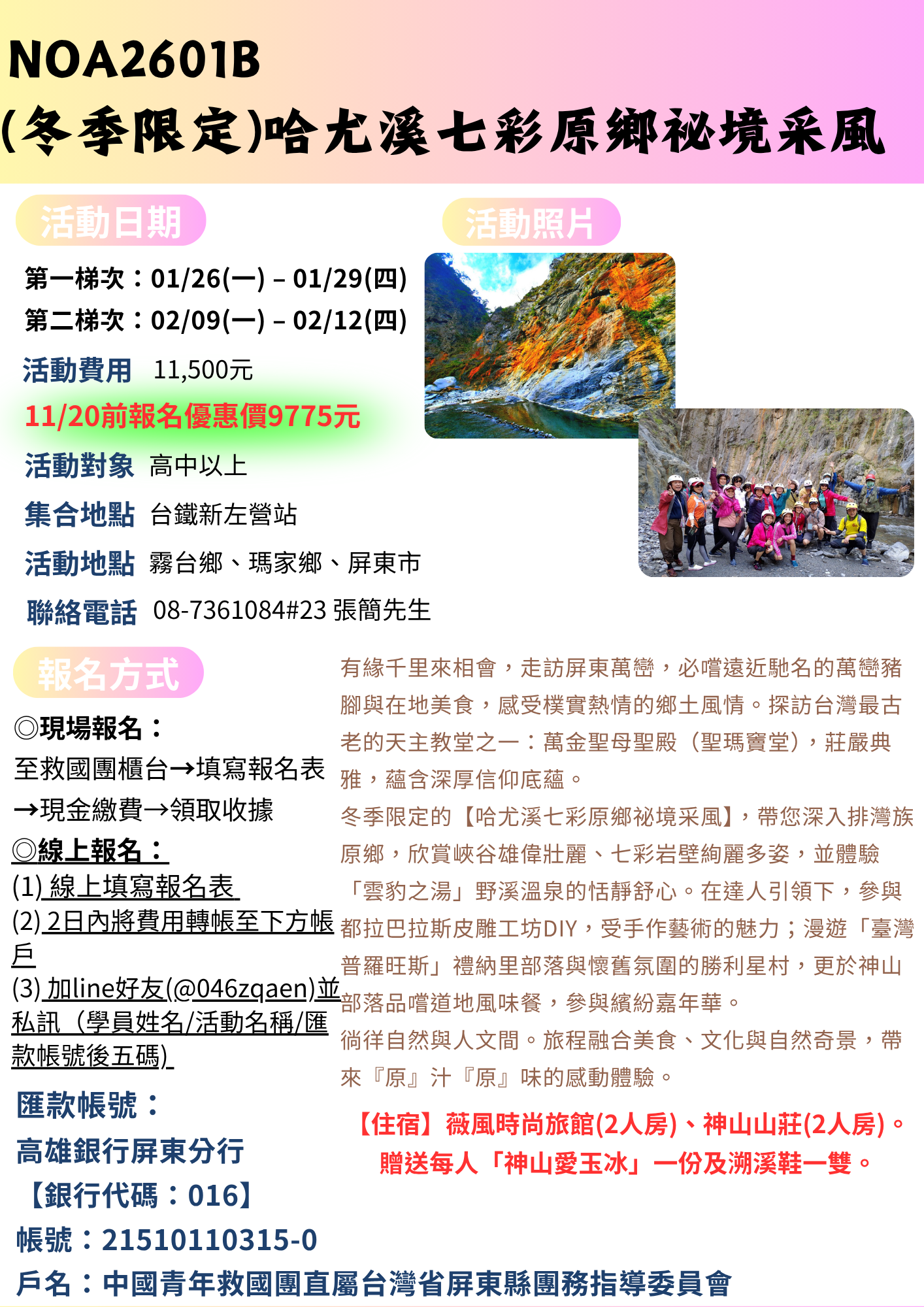 115年屏東縣救國團冬令營:NOA2601B【冬季限定】哈尤溪七彩原鄉祕境采風