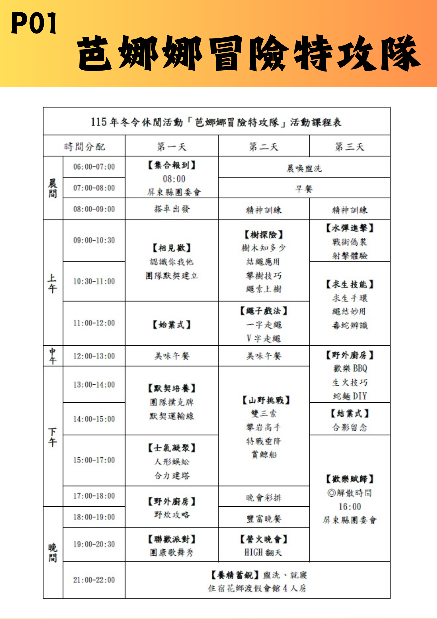 115年屏東縣救國團冬令營:P01芭娜娜冒險特攻隊
