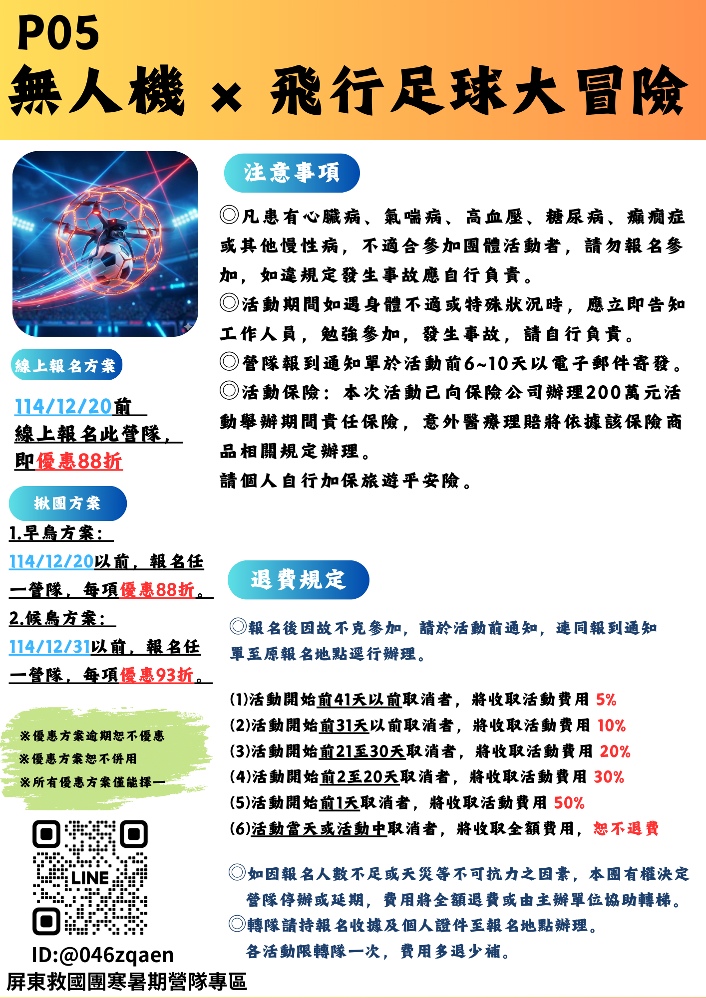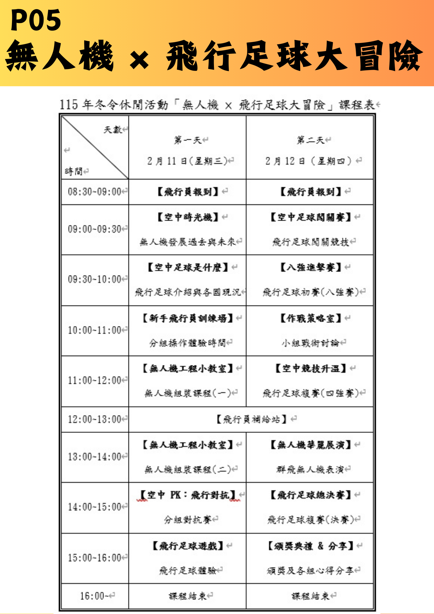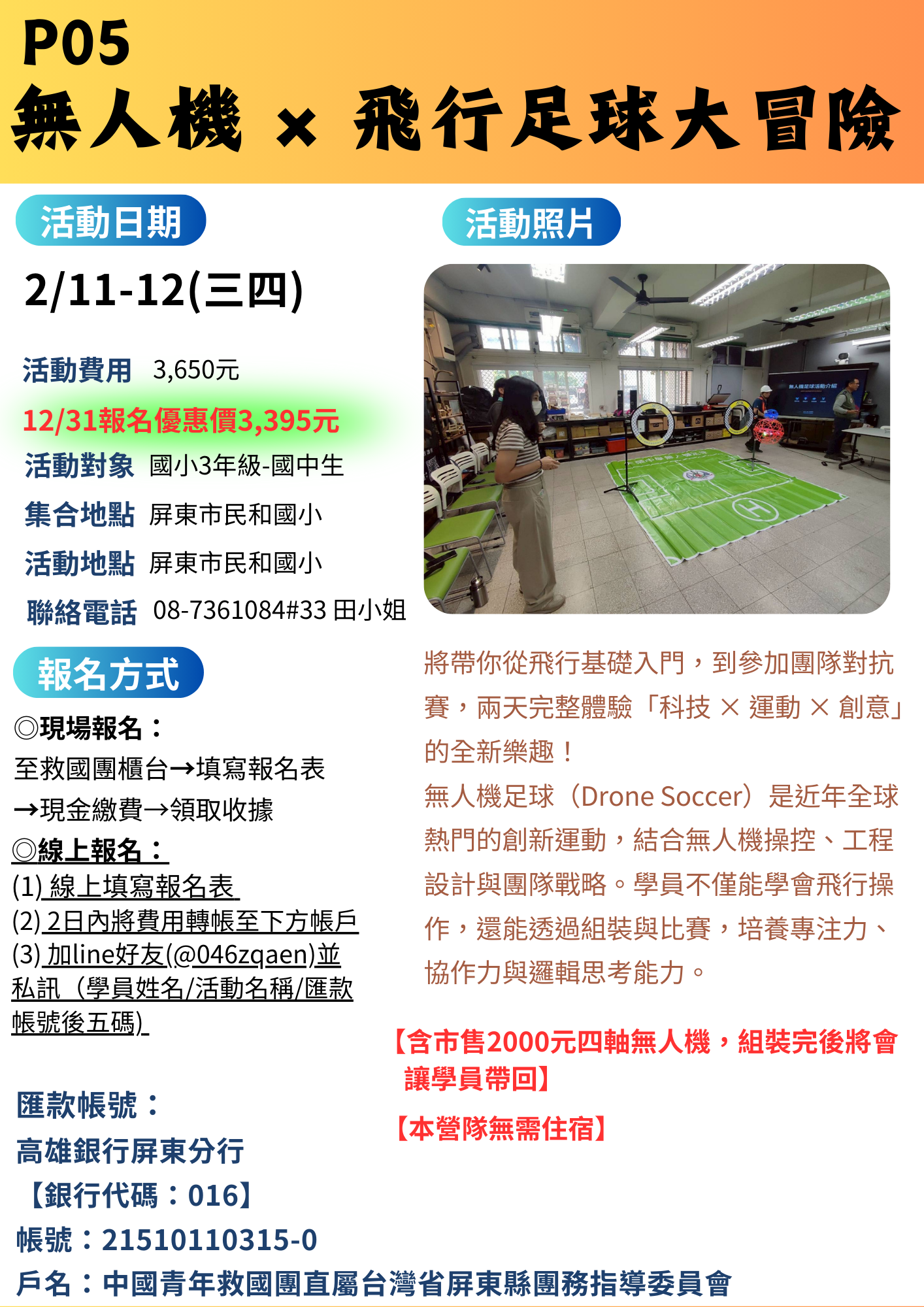 115年屏東縣救國團冬令營:P05無人機 × 飛行足球大冒險