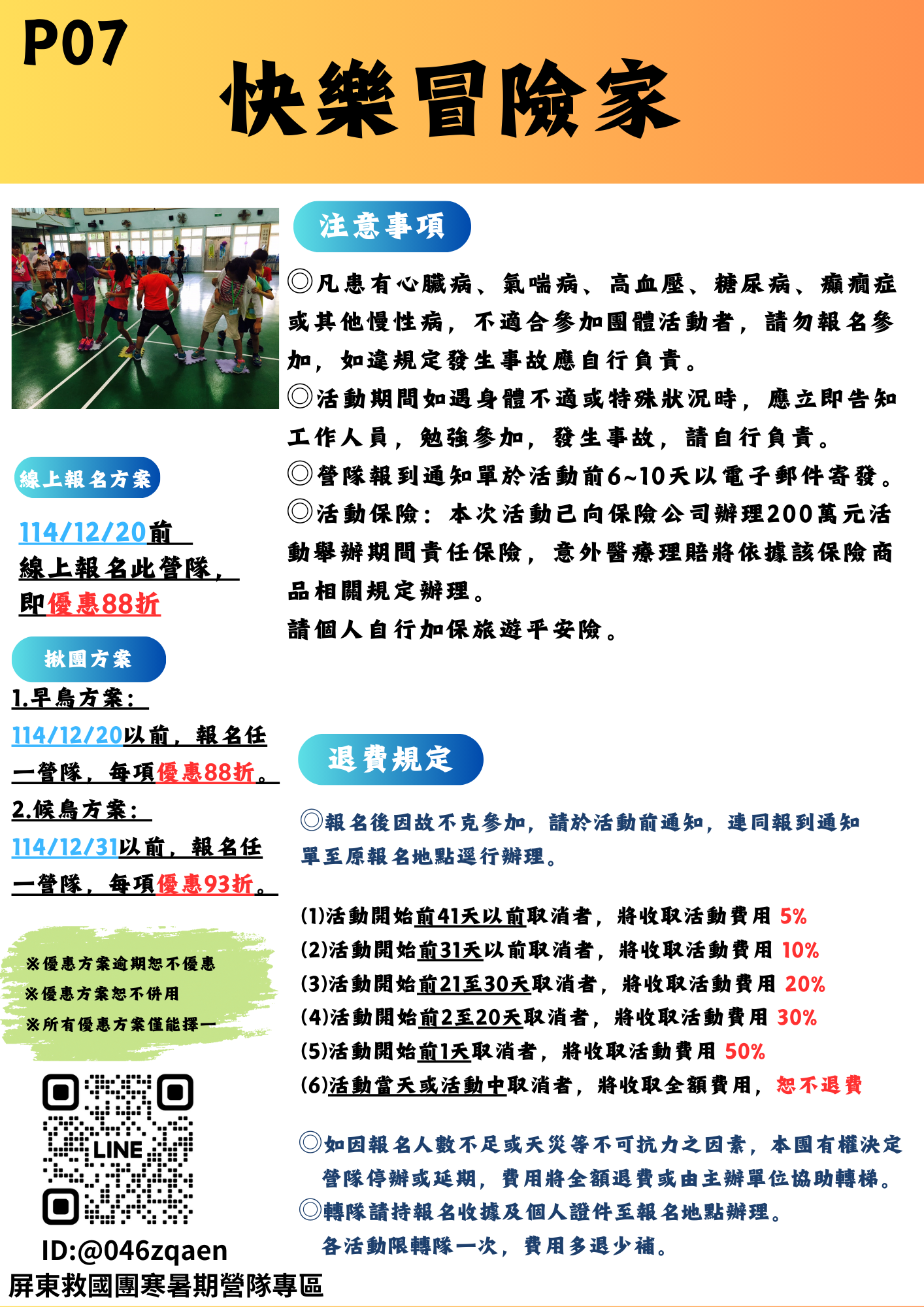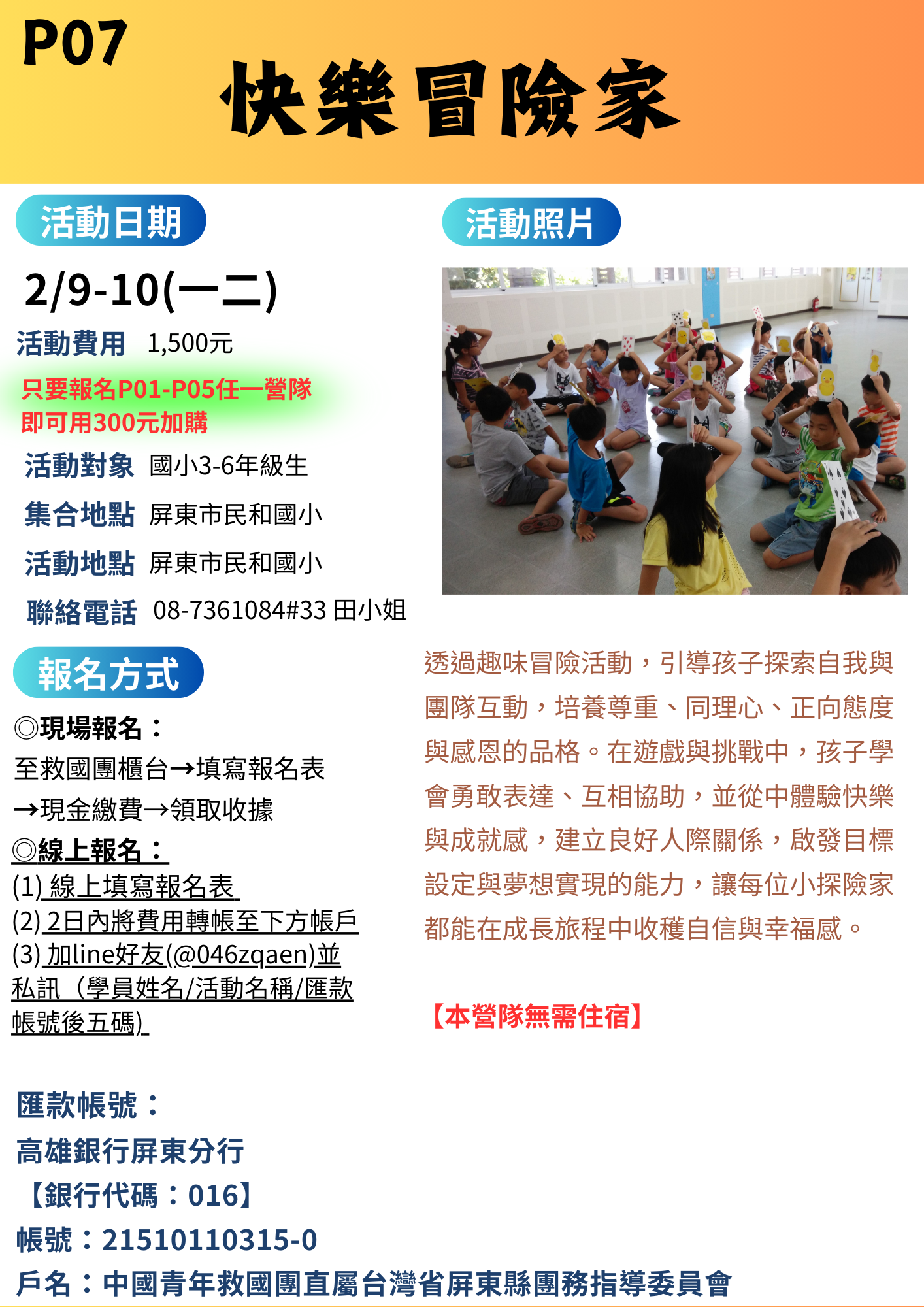 115年屏東縣救國團冬令營:P07快樂冒險家